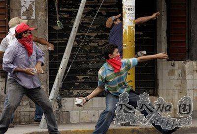 洪都拉斯防暴警察与示威者发生激烈的冲突