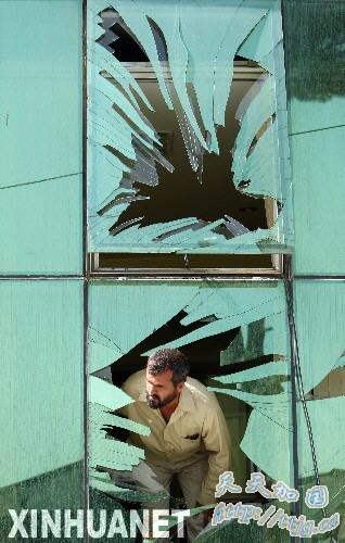 8月15日,在阿富汗喀布尔,一男子从被爆炸损坏的窗户里向外看。当日,一名自杀式袭击者驾驶满载炸药的汽车,在北约部队位于阿首都喀布尔市中心的总部门口引爆了炸药,造成至少3人死亡,70人受伤。 新华社发(扎比摄)