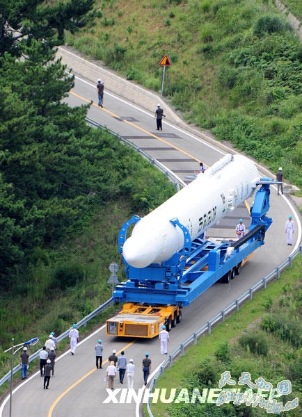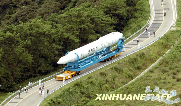 8月23日,在韩国罗老宇航中心,“罗老”号火箭被运往发射架。韩国将于本月25日再次在罗老宇航中心发射19日因软件故障中止发射的韩国首枚运载火箭“罗老”号。由于与俄方签署协议出现滞后等原因,“罗老”号的发射时间从2007年一推再推。