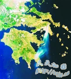 欧洲航天局8月23日公布的卫星照片显示希腊森林大火产生的浓烟带。