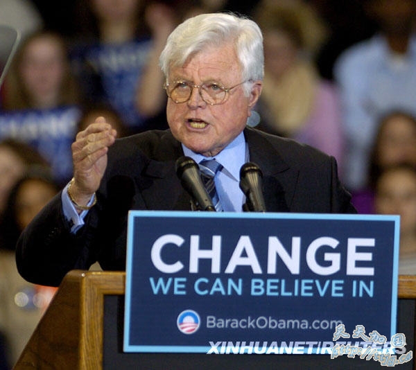 据美国媒体报道,美国联邦参议员、前总统约翰·肯尼迪之弟爱德华·肯尼迪于8月25日去世,享年77岁。这是2008年1月28日拍摄的爱德华·肯尼迪在华盛顿为奥巴马竞选造势的资料照片。