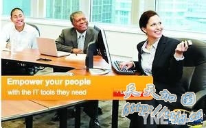 在美国的网站上,中间的男子为非洲裔男性 美国微软公司把一张广告照片中人物改头换面,结果因种族歧视之嫌惹来指责,不得不道歉。
