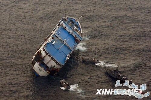 这张菲律宾海军提供的图片显示,9月6日,在菲律宾南部的三宝颜半岛附近海域,“超级客轮9”号发生倾覆,船上乘客在左舷避难。新华网发