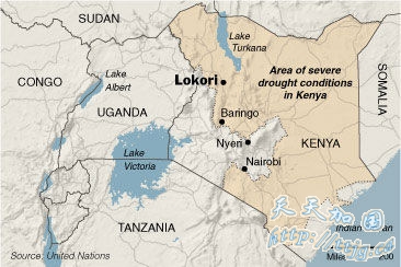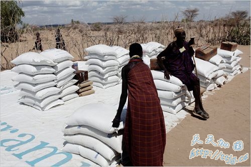 图:到目前为止,防止大规模饥饿继续蔓延的国际援助行动还没有全面展开,或者说没有达到满意的程度。一些政府官员甚至在饥荒迫在眉睫的时候非法出售数千吨的国家储备粮食。联合国世界粮食项目署(United Nations World Food Program)日前表示肯尼亚近40万人口——肯尼亚人口的十分之一——迫切的需要粮食补给。