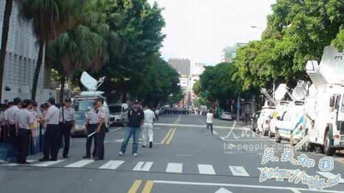 台北地院门前道路交通管制。人民网记者孙立极摄