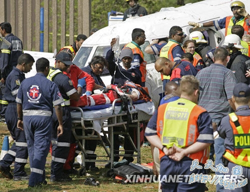 9月24日,在南非东部港市德班,救援人员将伤者从一架失事飞机中抬出来。新华社/路透