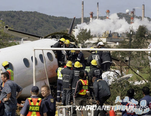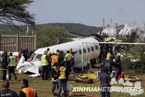 9月24日,在南非东部港市德班,救援人员正在营救失事飞机上的人员。