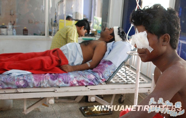 9月24日,在印度中部切蒂斯格尔邦的科尔巴,烟囱倒塌事故中的伤员在医院接受治疗。新华社/路透