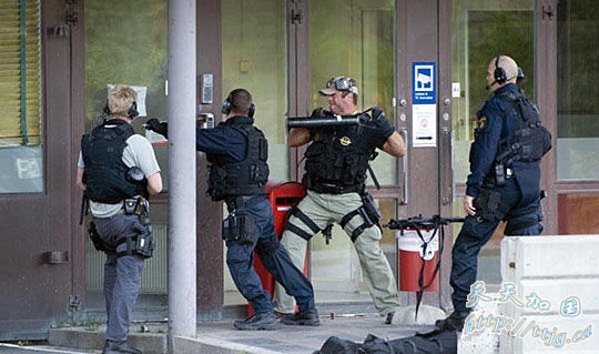 瑞典警方说,一架直升机23日凌晨5时左右飞至斯德哥尔摩附近G4S公司金库大楼上空,劫匪降落后用炸药炸开金库实施抢劫,整个过程持续约20分钟,至少10名劫匪参与。