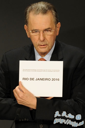 当地时间18:30(北京时间3日0:30),激动人心的宣布时间到来。在奥运会会歌奏响后,18:52分,罗格在感谢了四个参选城市的规划和努力之后,17岁的丹麦女运动员佩德森将装有写着胜出城市名字的信封交给了罗格,罗格郑重宣布里约热内卢成为了2016年奥运会的主办城市。