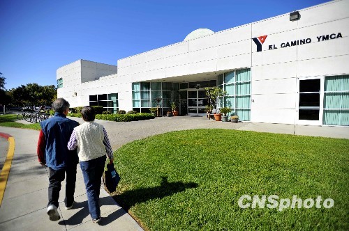 “光纤之父”高锟在美国硅谷的一间老人看护中心内锻炼身体。中新社发 陈钢 摄