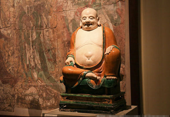 在中国厅中央墙上有几十平方米的敦煌壁画,其割痕虽犹可见,却难掩其久远的鲜丽及三位“浓丽丰肥”菩萨的雍容华贵。大英博物馆收藏的国宝级敦煌画卷及经卷多以万计,除了这幅壁画,其他藏品在中国厅内却难觅踪迹。