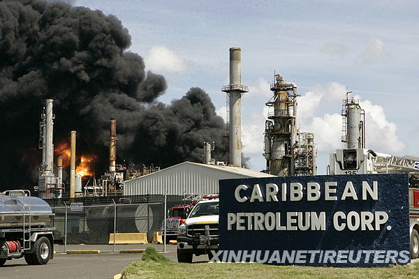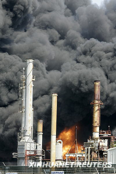 10月23日,在波多黎各卡塔尼奥,发生爆炸的炼油厂和油库被浓烟笼罩。新华社/路透