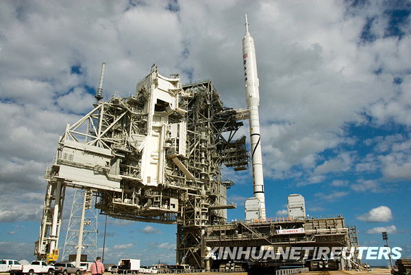 10月20日,一枚“战神I-X”试验运载火箭矗立在美国肯尼迪航天中心39-B发射台。 这枚耗资3.5亿美元的火箭定于10月27日点火升空。“战神I”型火箭是美国国家航空航天局为替代临近退役的航天飞机编队而开发的新一代运载火箭。除担负向国际空间站运送人员和物资外,它也是美国重返月球计划的航天器之一。新华社/路透