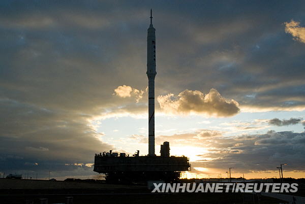 10月20日,一枚“战神I-X”试验运载火箭矗立在美国肯尼迪航天中心39-B发射台。 |