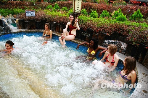 来自来自全球五大洲40多个国家和地区的超级模特在江西庐山天沐温泉身着泳装,尽情戏水。