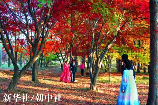 10月30日,朝鲜平壤市的秋色美丽动人。
