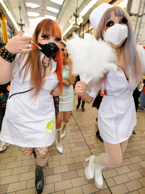 日本长崎,女孩们穿着奇异的服饰迎接鬼节