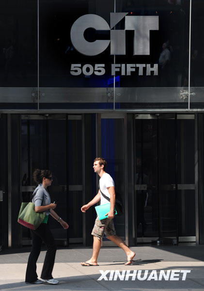 11月1日,由于政府救助和债务重组失败,拥有百年历史的美国最大的中小企业商业贷款机构CIT集团正式申请破产保护。这是7月16日,行人从位于纽约曼哈顿的美国CIT集团门前经过。新华社记者申宏摄