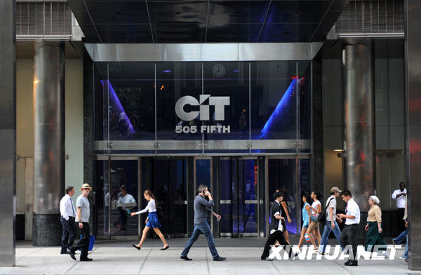 11月1日,有着101年历史的世界商业金融机构领军企业、美国主要中小企业商贷机构CIT集团因严重财务问题申请破产保护。这是7月16日,行人从位于纽约曼哈顿的美国CIT集团门前经过。新华社记者申宏摄