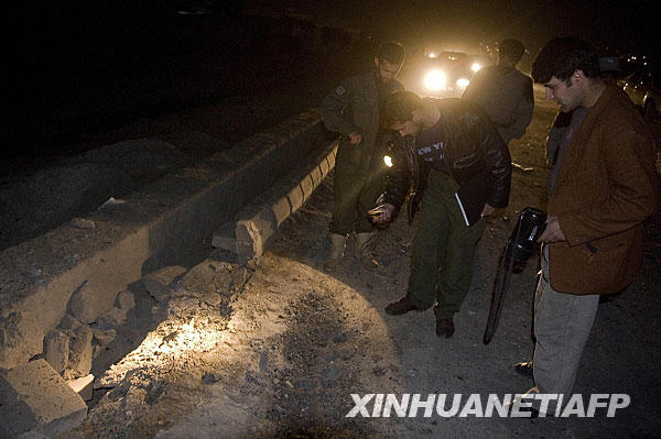11月1日,在阿富汗首都喀布尔一家医院附近,警方人员查看爆炸现场。据阿内政部说,当天这枚放置在路边手推车内的自制炸弹爆炸,导致包括2名儿童在内的4人受伤。新华社/法新