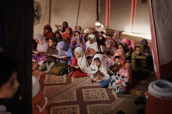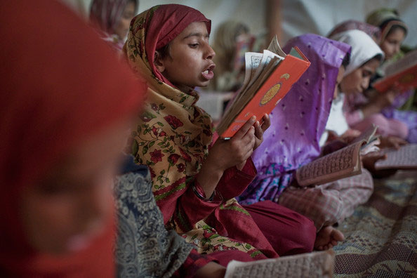 近日在巴基斯坦Swabi区,沙阿曼索尔难民营学校,流离失所的儿童诵读古兰经。由于政府军和塔利班之间的军事行动,巴基斯坦境内大约有300万难民,且这个数字还在不断增长。