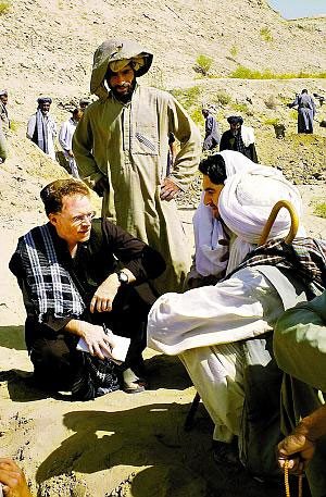 晚上,阿提古拉和巴鲁丁开车带我们出城。阿提古拉在一片干草地上停下车子,打开了发动机,为的是把车前灯打开,于是我们借着灯光可以看清楚海事卫星电话的键盘。阿提古拉和巴鲁丁命令我对妻子说,我们现在位于阿富汗的大山中,处境恶劣。我拨通了克里斯汀的电话。"喂?"她说。