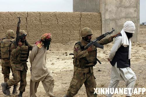 这张巴基斯坦军方11月2日发布的照片显示,巴军队士兵在南瓦济里斯坦地区进行的军事行动中抓获塔利班武装分子。巴基斯坦政府军3日称已经包围萨拉罗卡,现阶段已将这座小镇团团包围,围剿行动已经开始。巴基斯坦塔利班运动则称,弃守萨拉罗卡为塔利班战略,政府军已经进入陷阱,塔利班即将反攻。新华社/法新
