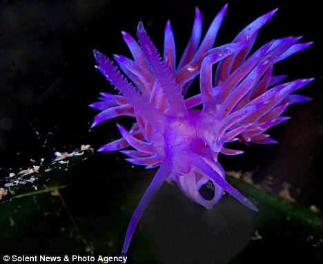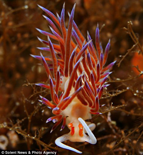 北京时间11月11日消息,据英国《每日邮报》报道,来自法国的海洋生物研究员托玛斯-维甘诺德近日潜入法国南部海底,拍下了一组色彩斑斓的海底裸鳃亚目动物的照片。照片上,这些色彩亮丽眩目的奇特动物看起来就像是深海中的巨大怪物,事实上,它们只有1英寸长。