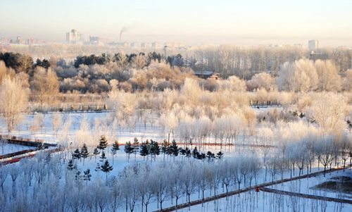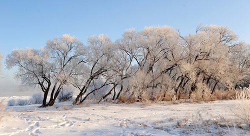 2009年11月12日,中俄界河黑龙江黑河段气温骤降到零下20度,进入流冰期的黑龙江两岸出现绵延数公里罕见雾凇景观,成为中俄边城初冬一道靓丽风景。
