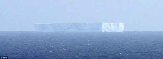 冰山距离麦考利岛大约8公里,科学家们隐约可见其整体轮廓。