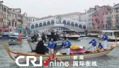 位于意大利北部的威尼斯是世界闻名的水上之城。近年来由于城市不断下沉,加之气候变化的影响,这座城市正面临着居民大幅减少,以致消亡的威胁。为此,该城部分居民14日为威尼斯举行了具有象征意义的“葬礼”,以引起世人的关注。