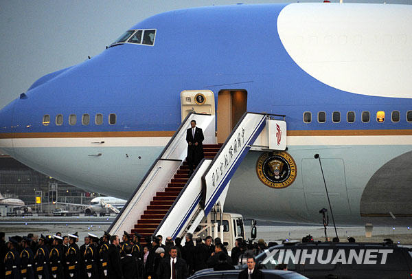 11月16日下午,美国总统奥巴马乘专机从上海飞抵北京。这是奥巴马走下飞机。新华社记者 张铎 摄