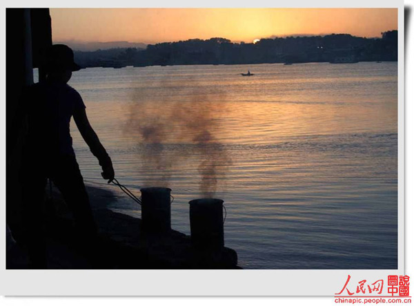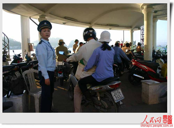 这是离宾馆不远的一个渡口,早上人很多,很繁忙。渡口工作人员诧异看这我这个外国人。