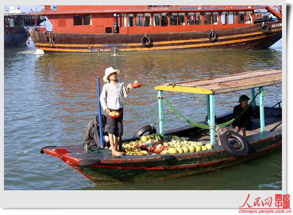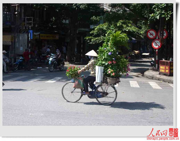 海防城市不大,城区都是二、三层楼的老建筑,几乎没有高层高楼,导游说老城至今还保持了法国殖民地时期的原样,的确,新建筑几乎没有。街上买鲜花的很多,很多人家的窗台上也摆着鲜花。