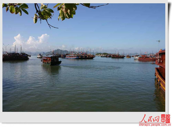 下龙湾,越南北方的名胜,风景确实是很美。这是港湾,停满了这种木制大游船。去过的朋友一看就知道这就是游船。