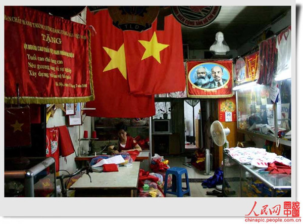 越南盾和人民币比是很不值钱的,都说到越南去都成了富翁,但越南河内的消费并不低。商业街上有很多名牌时装店。在一般的服装店里,我曾为同行的一位女士一起为买一件时装和老板讨价还价,简单的英文加上计算器、加上N多个零的盾和元的换算,最后我们得出的结论是比上海的还贵10-20%,而且还不是品牌服装。