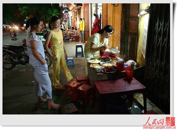 白天逛玩了河内的名胜,晚上就逛逛河内的商业街。河内的商业街很繁华,夜色下的小吃摊很多,风味很多。