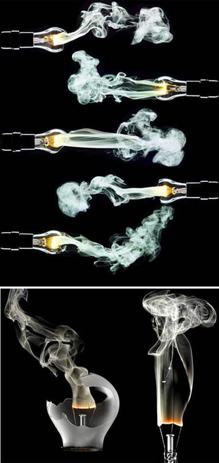 这些是由艾琳·穆勒(Irene Muller)在灯泡通电爆炸瞬间所捕捉到的烟雾照片
