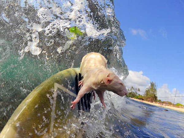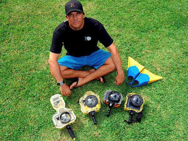这是一只热爱冲浪运动的老鼠,名为“豆腐”,它也来到了夏威夷,一展身手。 这样照片是今年夏天在夏威夷的拉尼阿克阿海滩拍下来的。 克拉克-里透是当今世界顶级冲浪摄影师,多年以来,他全心致力于拍摄巨浪内部的另类景观。 克拉克和他的摄影装备。 |
