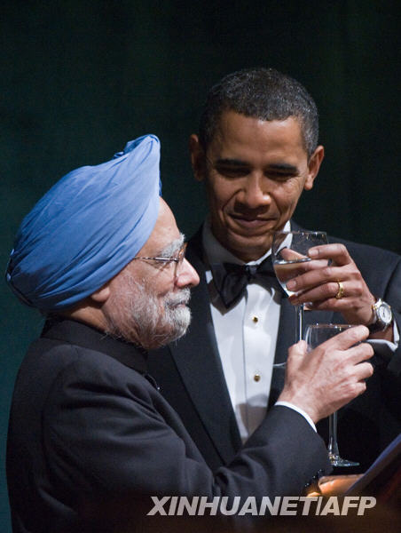 当晚,奥巴马在白宫南草坪上具有印度风格的临时帐篷里为辛格举行国宴。