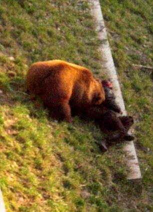 在警察最后开枪将芬恩击伤前,这只棕熊似乎在玩耍可怜的男子