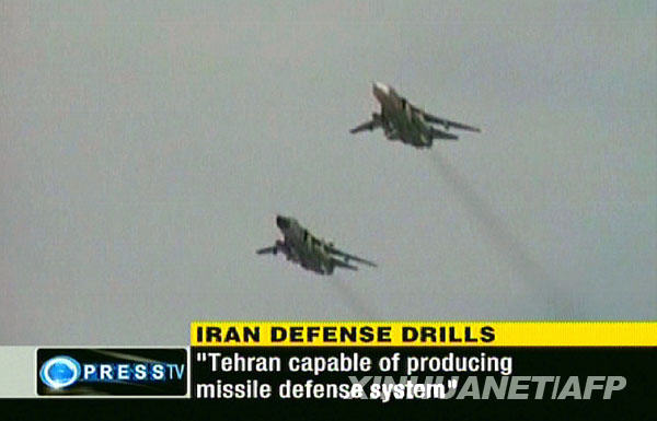这是11月22日由伊朗英语电视台提供的伊朗战机参加防空演习的电视画面截图。伊朗防空部队当日开始一场为期5天、覆盖伊朗三分之一领土的大规模防空演习。这次演习,以敌军空袭伊朗重要设施为假想情节。伊朗革命卫队空军部队司令阿米尔·阿里·哈吉扎德对外宣称,如果以色列战机入境袭击,伊朗防空力量有能力将其歼灭,使之有来无回。 新华社/法新