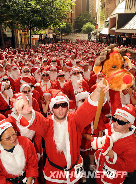 11月29日,数千名“圣诞老人”在澳大利亚悉尼参加为残疾儿童募捐长跑。