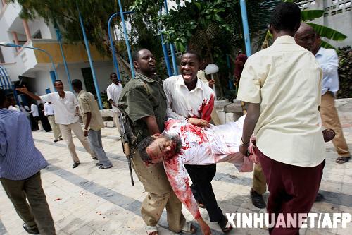 索马里首都摩加迪沙“沙摩酒店”一间装饰一新的宴会厅内3日为贝纳迪尔大学43名学生举行毕业典礼,多名索过渡政府要员参加了典礼。一名“身着女装”的自杀式袭击者混入嘉宾人群,引爆炸弹,制造惨案。