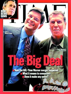 时代华纳和美国在线并购轰动一时,上了《时代》杂志的封面。