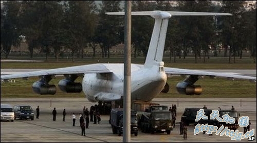 路透社报道,12日一架来自朝鲜的飞机飞抵曼谷廊曼(DonMuang机场加油,被检查出大批武器,超过35吨。据政府发言人表示,他们无法查明飞机的目的地是哪里,有可能是南亚某国。目前,泰国已请求美国给以协助调查。一名泰国官员表示,该飞机目的地可能是巴基斯坦。