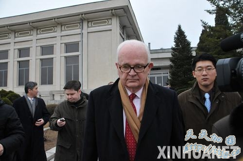 资料图片:12月10日,美国朝鲜政策特别代表博斯沃思(前)结束对朝鲜为期3天的访问离开平壤。新华社记者姚西蒙摄
