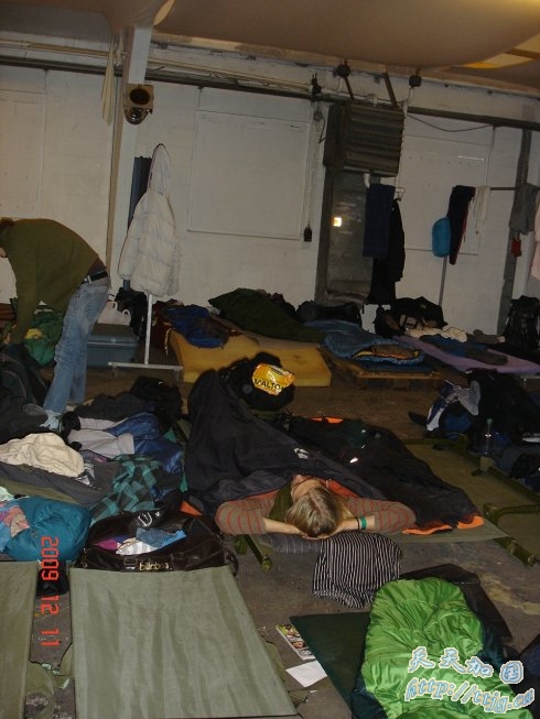 志愿者睡在离会议中心很远的仓库里,一大间里住着200位志愿者。向哥本哈根气候变化大会的志愿者致敬。