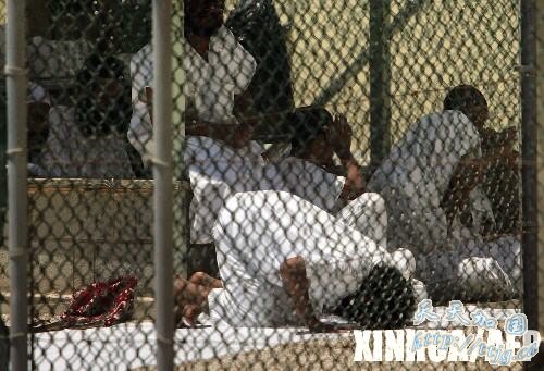资料图片:这张拍摄于2006年4月6日的资料照片显示,被关押在关塔那摩德尔塔营的囚犯在做祈祷。 新华社/法新